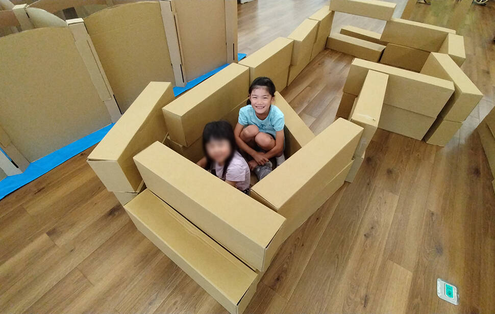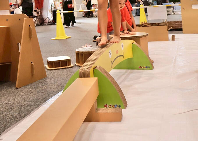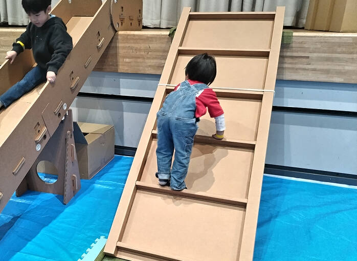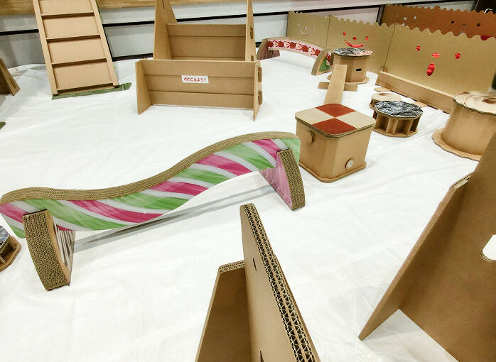 ダンボールであるにもかかわらず、しっかりと子どもたちの遊びに付き合ってくれる遊具たちです。